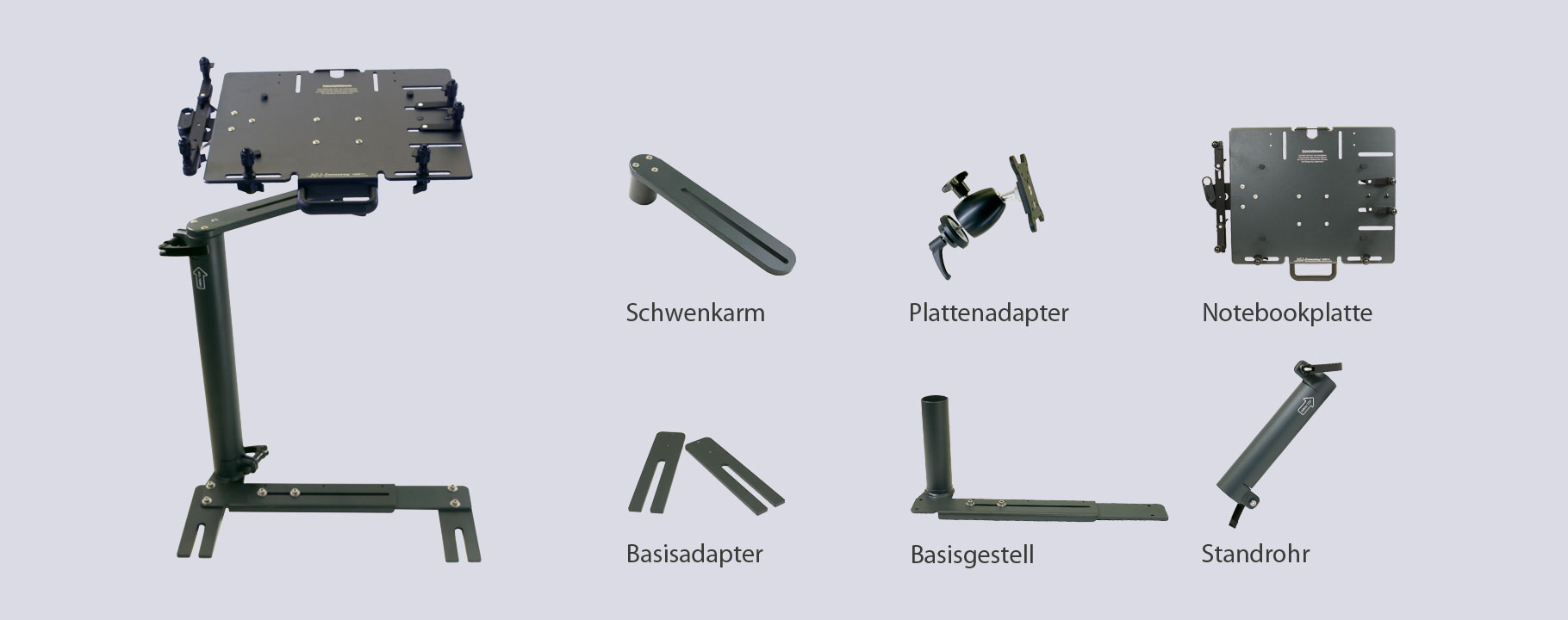 Jedes Laptophaltesystem besteht aus den folgenden Modulen: